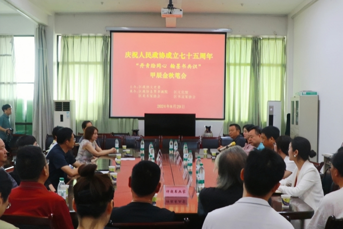 开展一次金秋笔会。“同舟共济”“不忘初心”“厚德载物”......以笔为媒,以墨传情,“丹青绘同心,翰墨书共识”甲辰金秋笔会活动近日在区文化馆成功举办。书画爱好者们齐聚一堂,在宣纸上抒发着对祖国的热爱和美好生活的向往,活动共创作书画作品50幅。