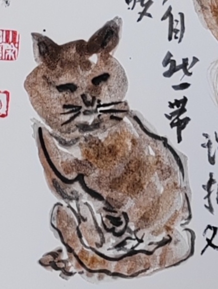 老太太已八十三岁了,身体硬朗、质朴真诚,还很健谈。随老太太一起来给画家送火盆的,还有一只黄色老猫,三条腿,走起路来一瘸一拐。