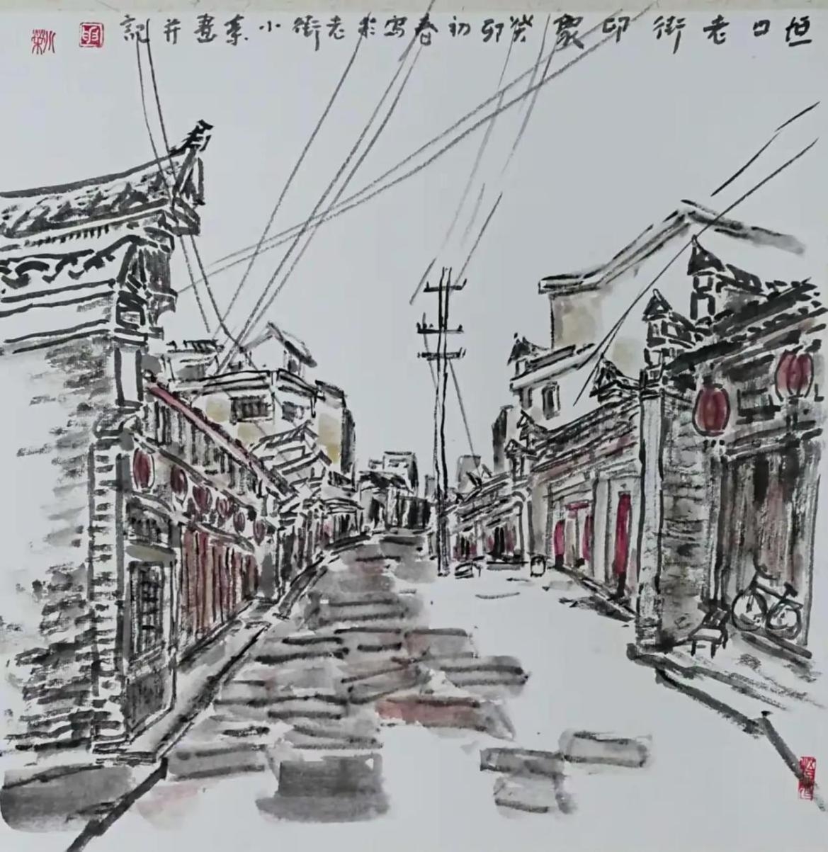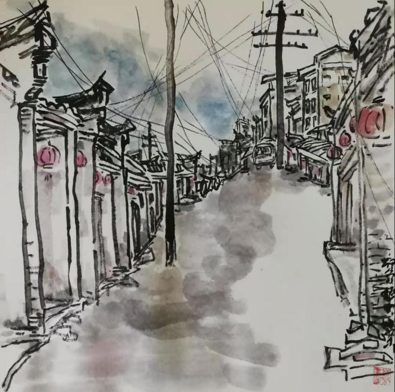 今日进得古镇,一片宁静,十有九户闭门关张且破败拆损严重,笔墨记之,呼吁加强保护力度。
