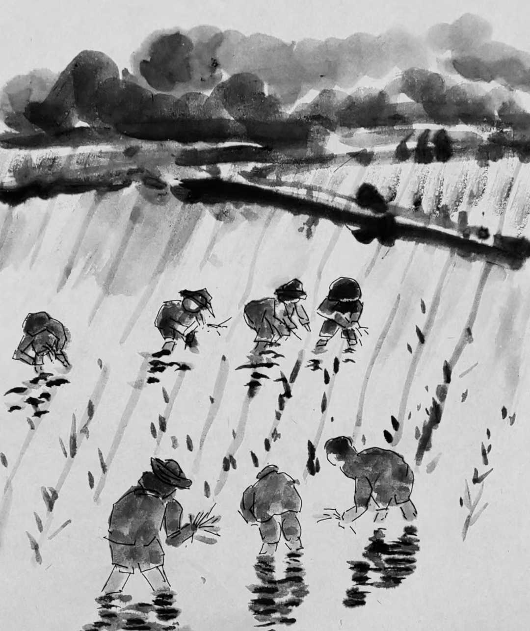 两名妇女有些为难的把水桶抬走了,而我们就在地头开了整整一上午学习斗私会,解决思想问题。会议确定:从第二天起,队员早上五点和农民一道下地,渴了就自己去村上老井打井水饮用。