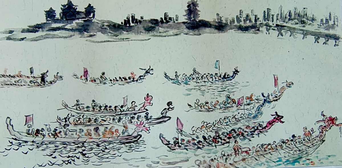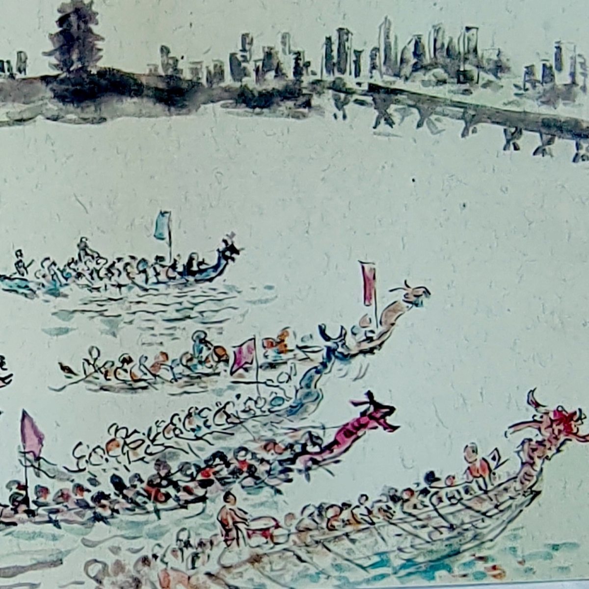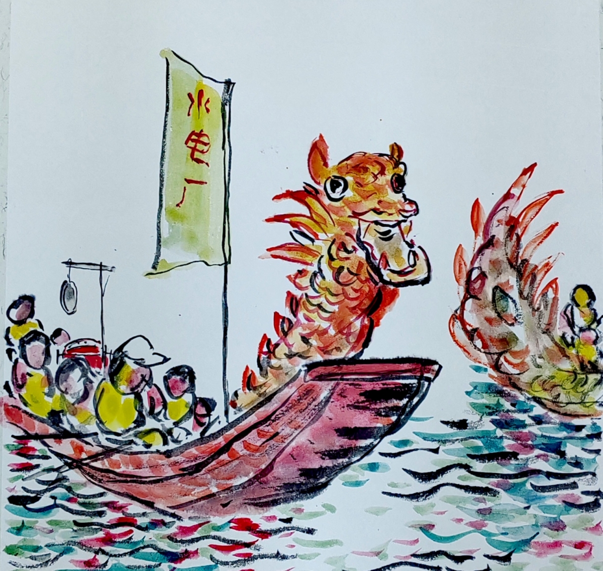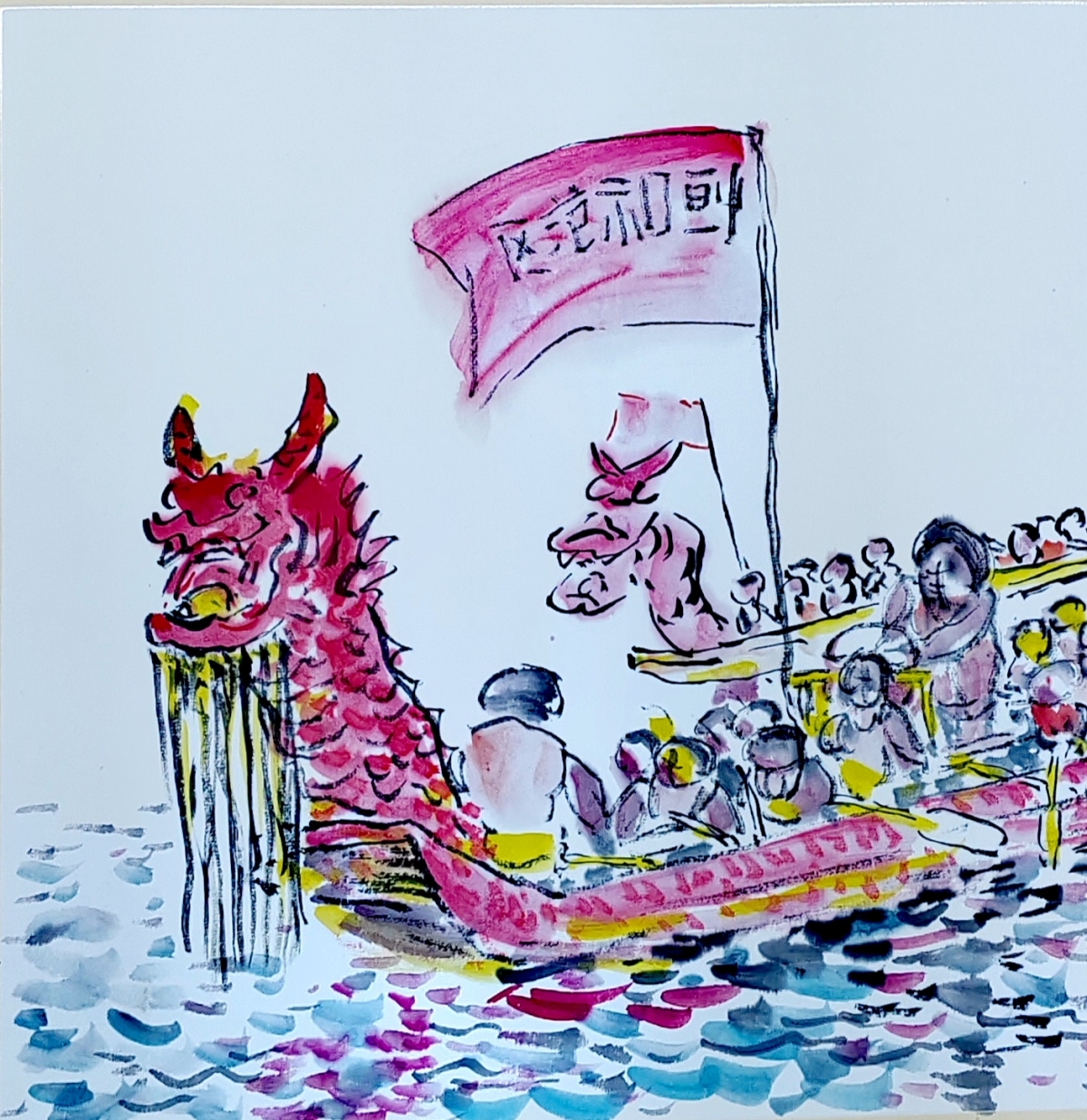 涂抹几张写生草稿以念旧地之情、龙舟之情!
