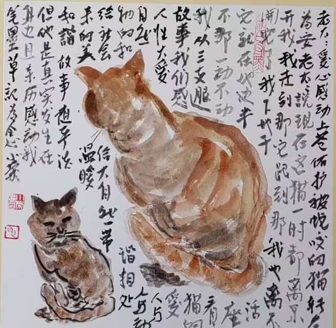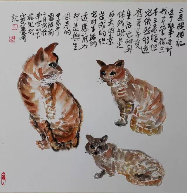 我想这是老太太的爱心,感动了上苍,让被蛇咬的黄猫转危为安。 三条腿猫的故事,让我感受到人性大爱,感受到人与动物所呈现的温馨和谐与大美。这真实发生在身边,且亲身经历的平常故事感动了我,用笔墨草记为念。